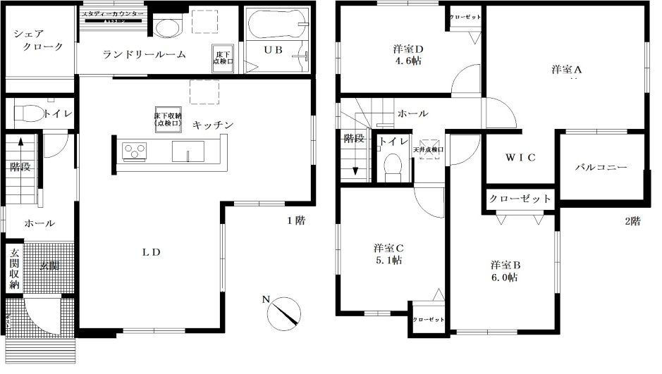 ランドリールーム+スタディーカウンター・シェアクローク